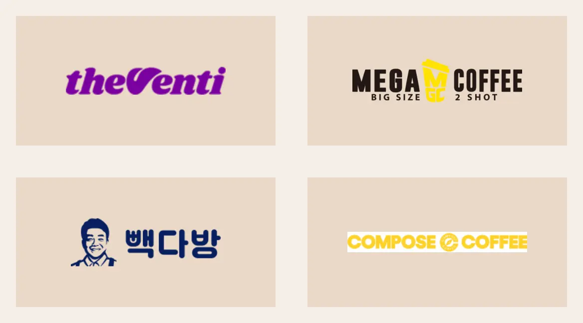 - 브랜드 이미지 참고: 더벤티, 메가MGC커피, 빽다방, 컴포즈커피