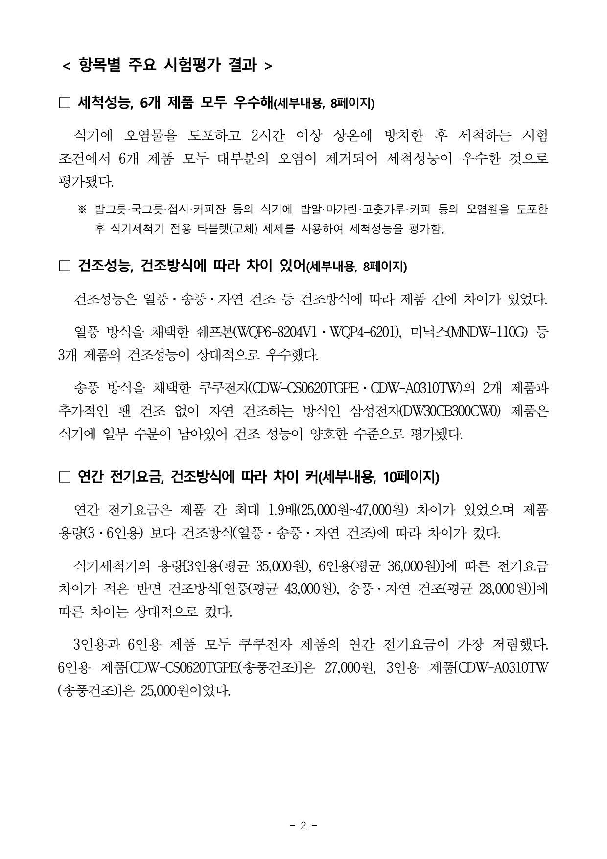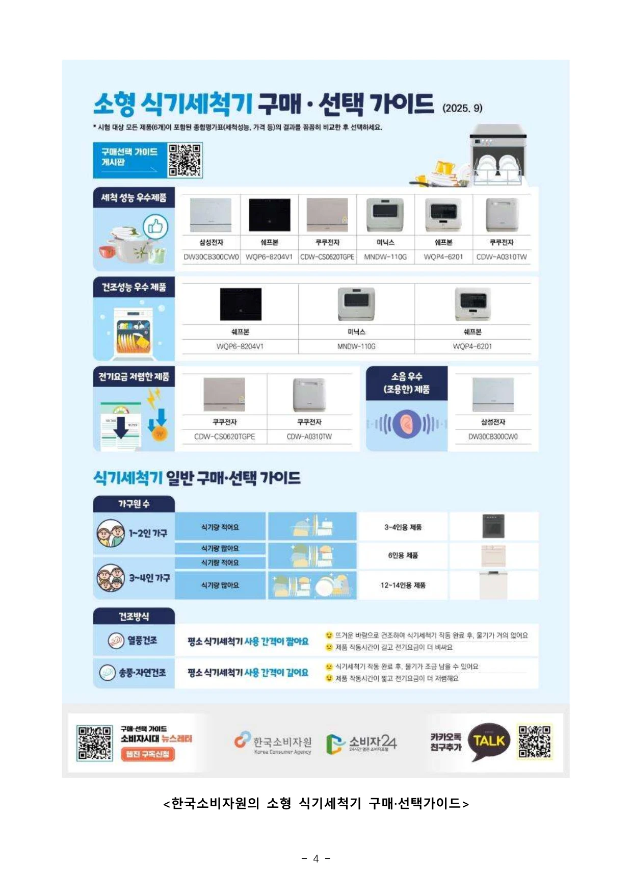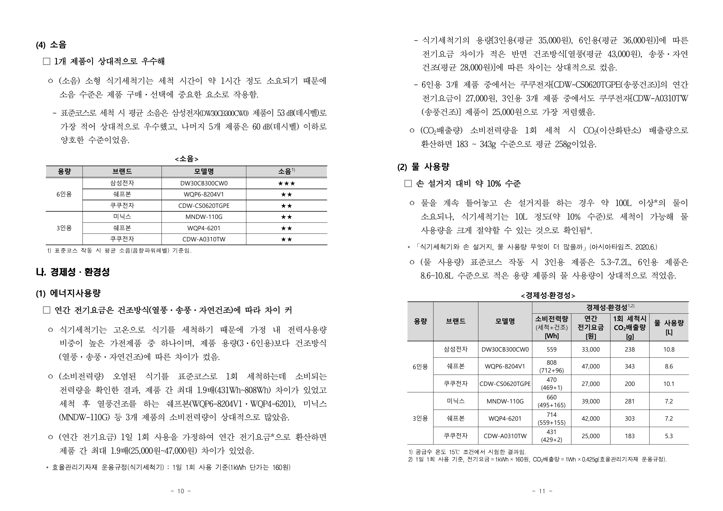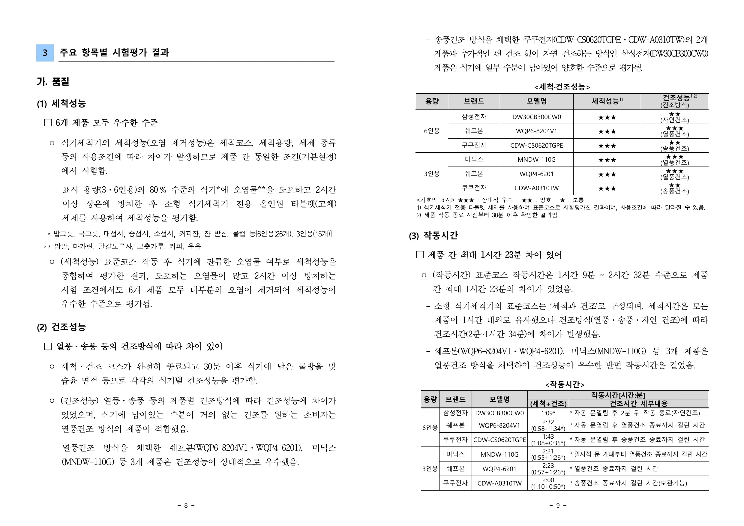 - 한국소비자원 보도자료: 소형 식기세척기 품질비교 결과
